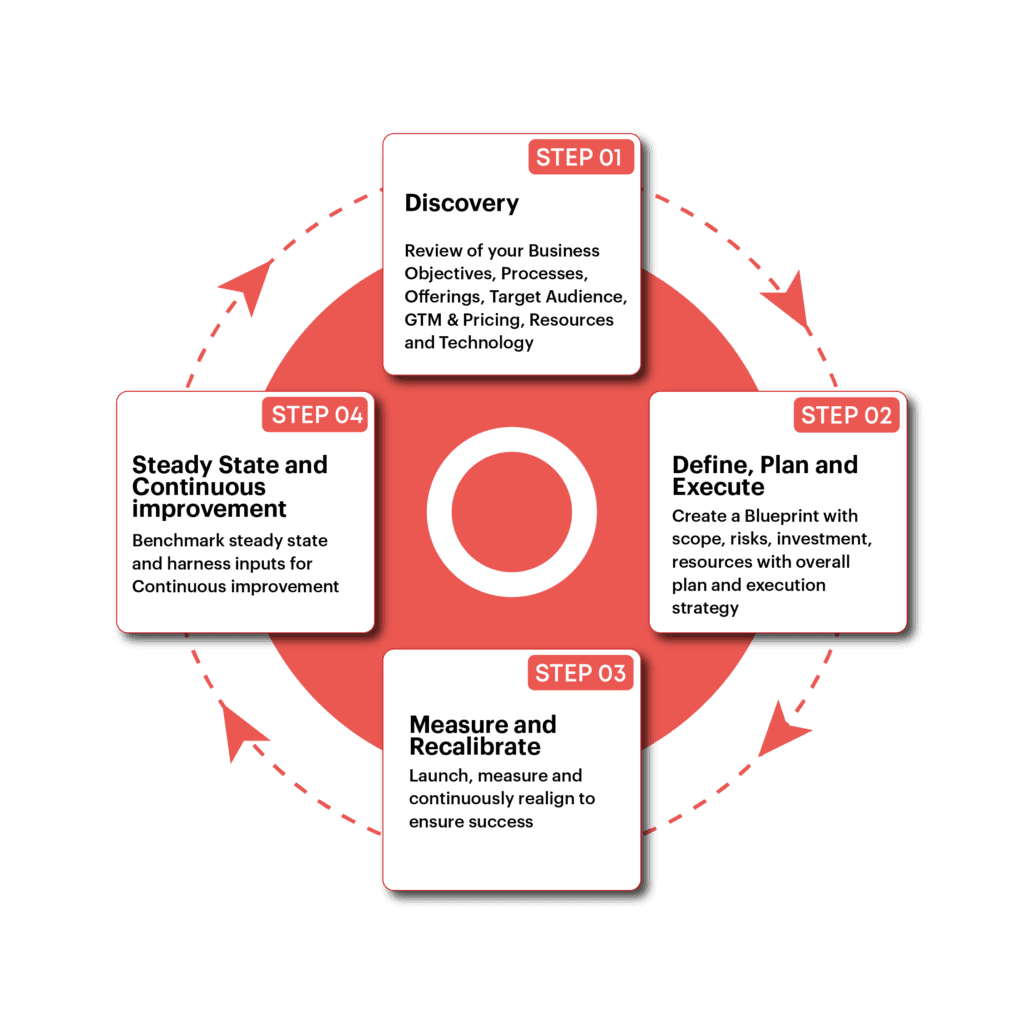 We have a simple Four step approach that enables continuous improvement. Interestingly, while they are tightly integrated for cost and efficiency, it still offers flexibility where one can leverage them independent of each other and still derive immense benefits. You as a customer are always in-charge to drive and leverage our services as best suited to your business objectives.